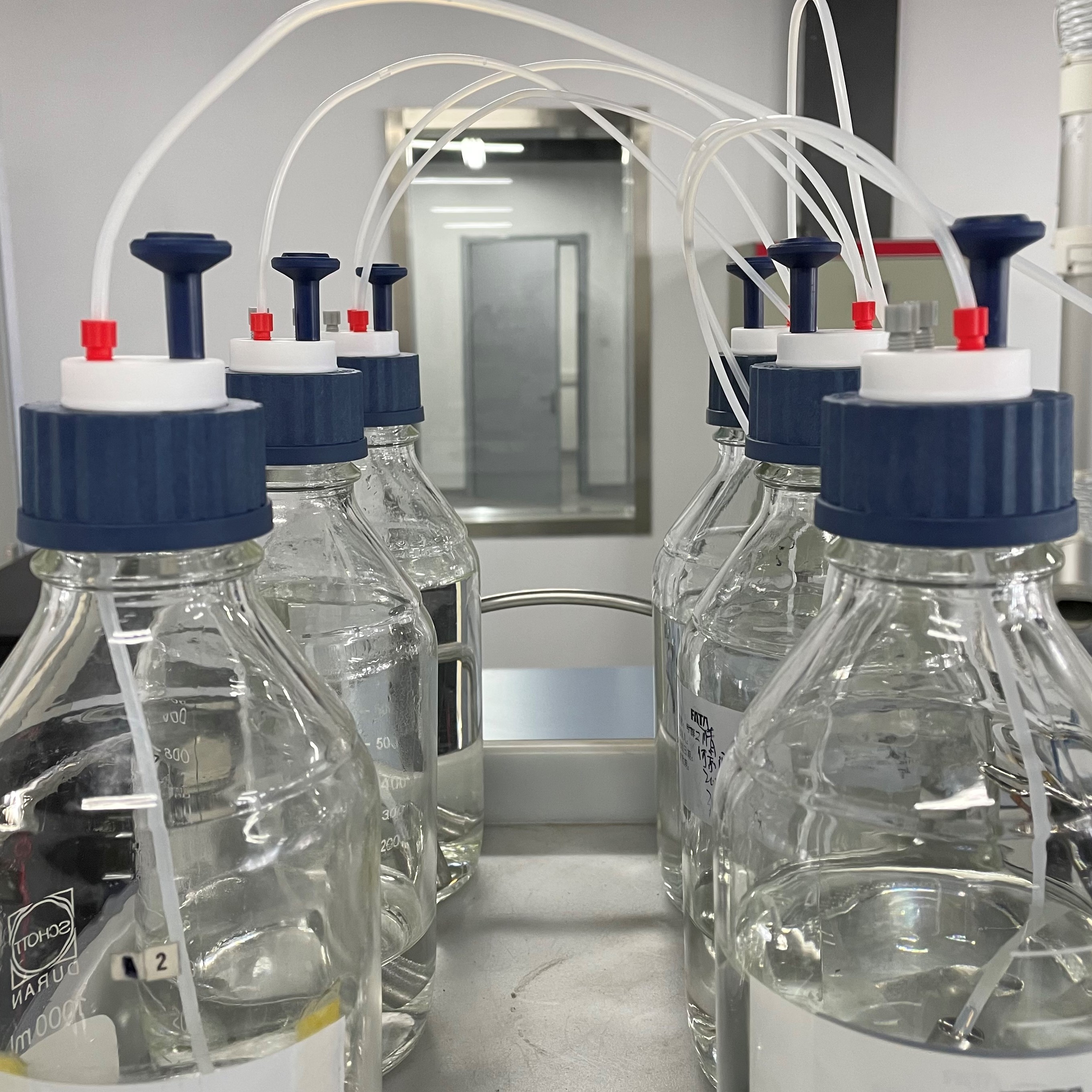 在同等工作環境下,取A公司(美國原裝進口)和優諾公司的安全瓶蓋和廢液處理器各一套,以純甲醇溶劑為實驗對象,分別在第1天、第7天、第30天、第37天、第106天,對溶劑和廢氣過濾器分別進行稱重測量。