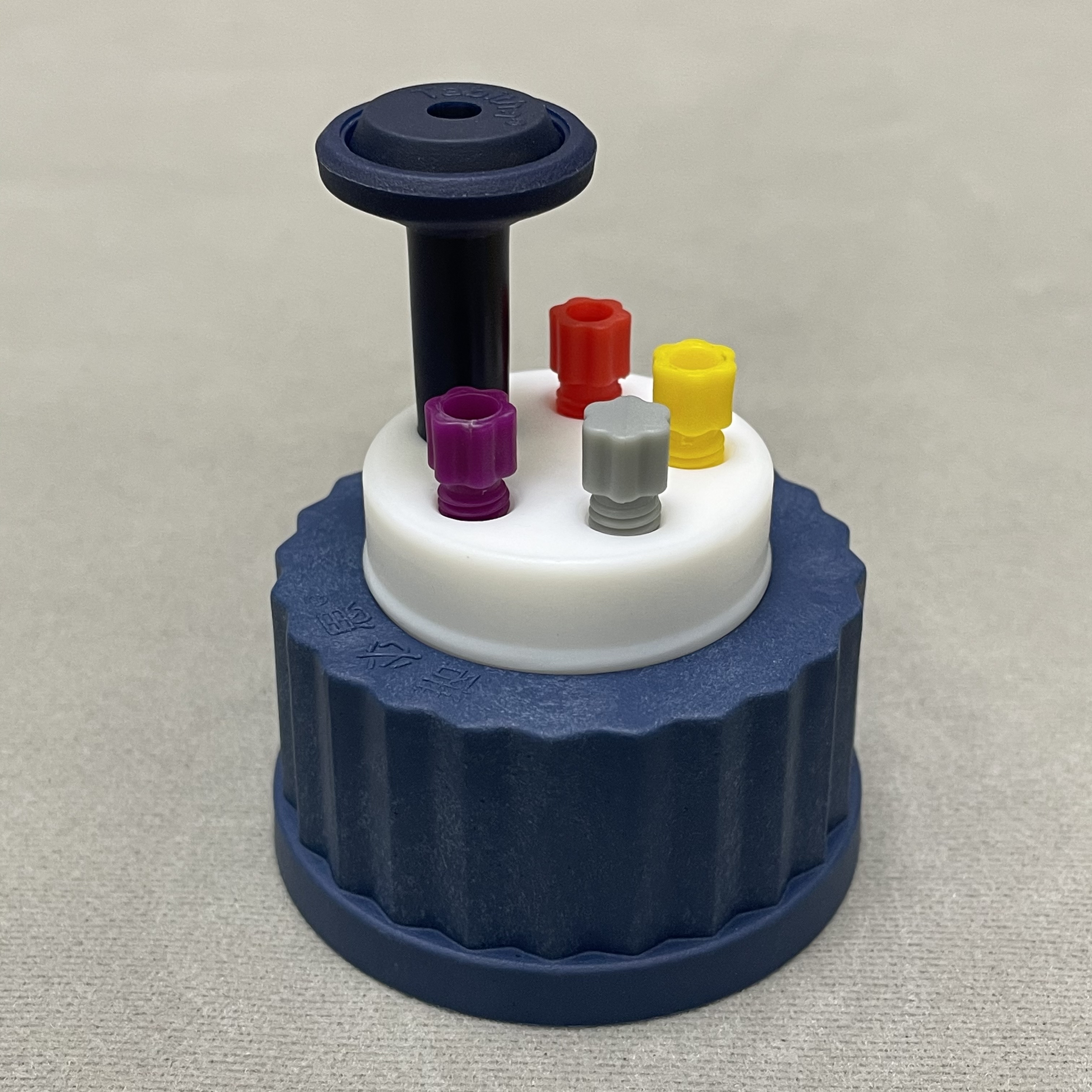 規格:四孔溶劑蓋 GL45 solvent Safety Cap Ⅳ(含單向進氣閥*1+紅色3.2mm管路接頭*4)1/pk